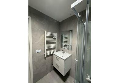 • Salle d'eau contemporaine avec douche et finitions soignées.