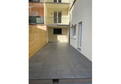 Hall d'entrée, séjour avec cuisine ouverte , une salle de douche avec lavabo et WC, une chambre, cave, grande terrasse de +/- 17,63m2