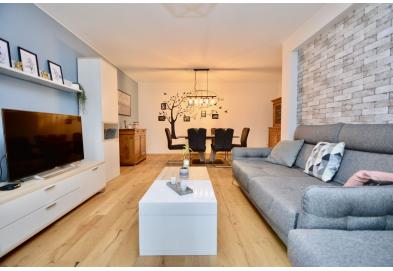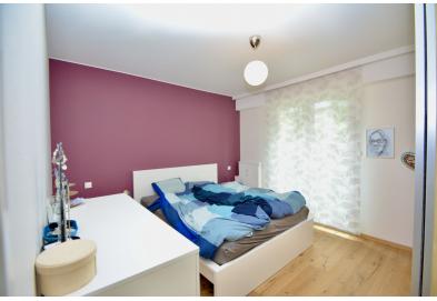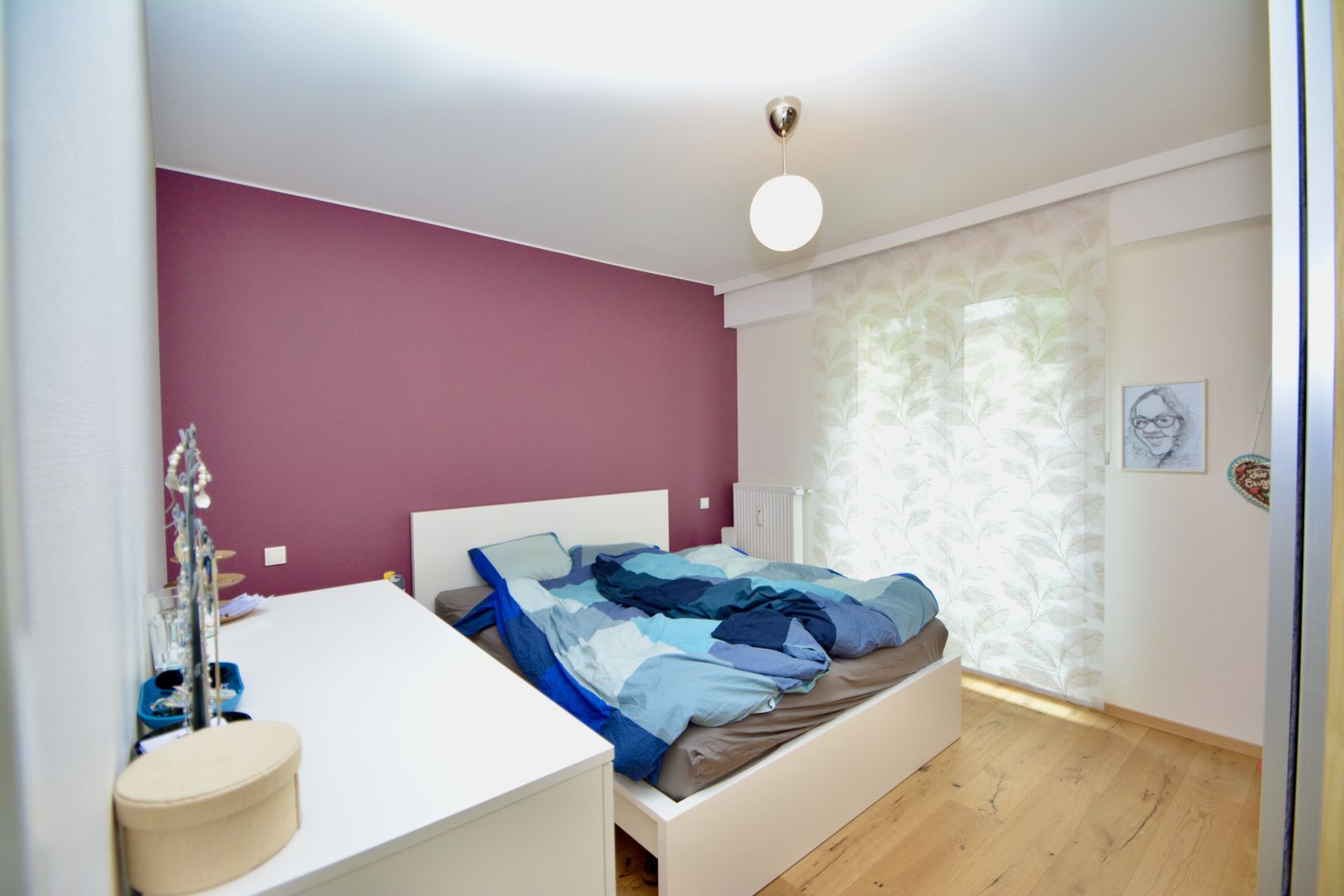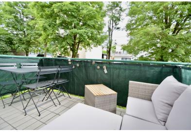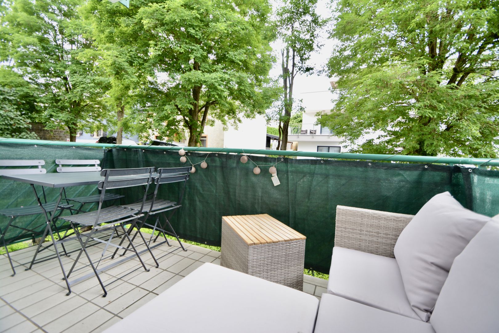 L'appartement se compose d'un hall d'entrée desservant un séjour lumineux avec accès direct à un balcon de 5 m², d'une cuisine équipée séparée, d'une chambre à coucher ainsi que d'une salle de douche. L'ensemble est complété par une cave privative au sous-sol et un garage fermé situé à l'arrière du bâtiment.